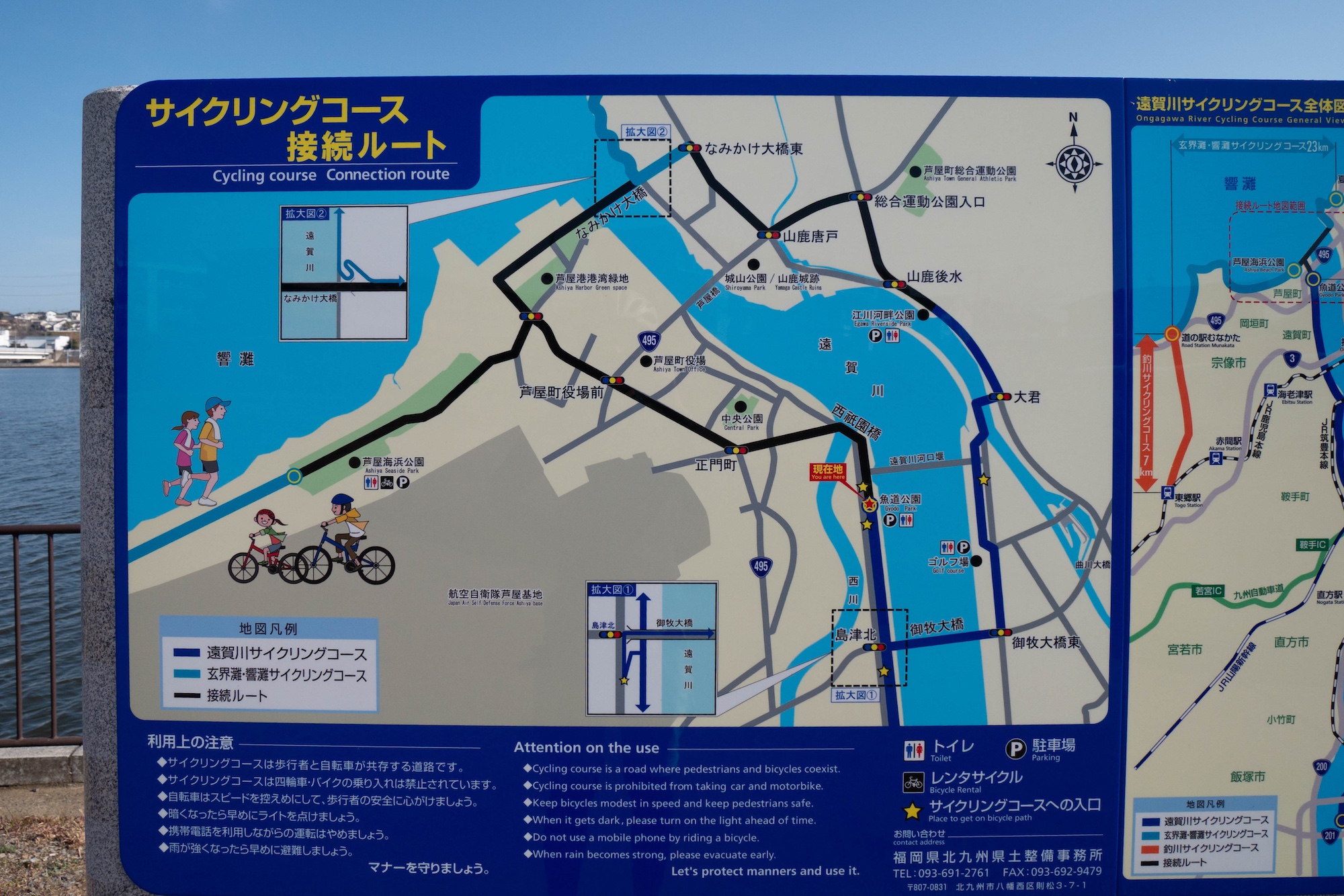 遠賀川を北上すると、芦屋町へ入りました。そして、遠賀川魚道公園に到着。
