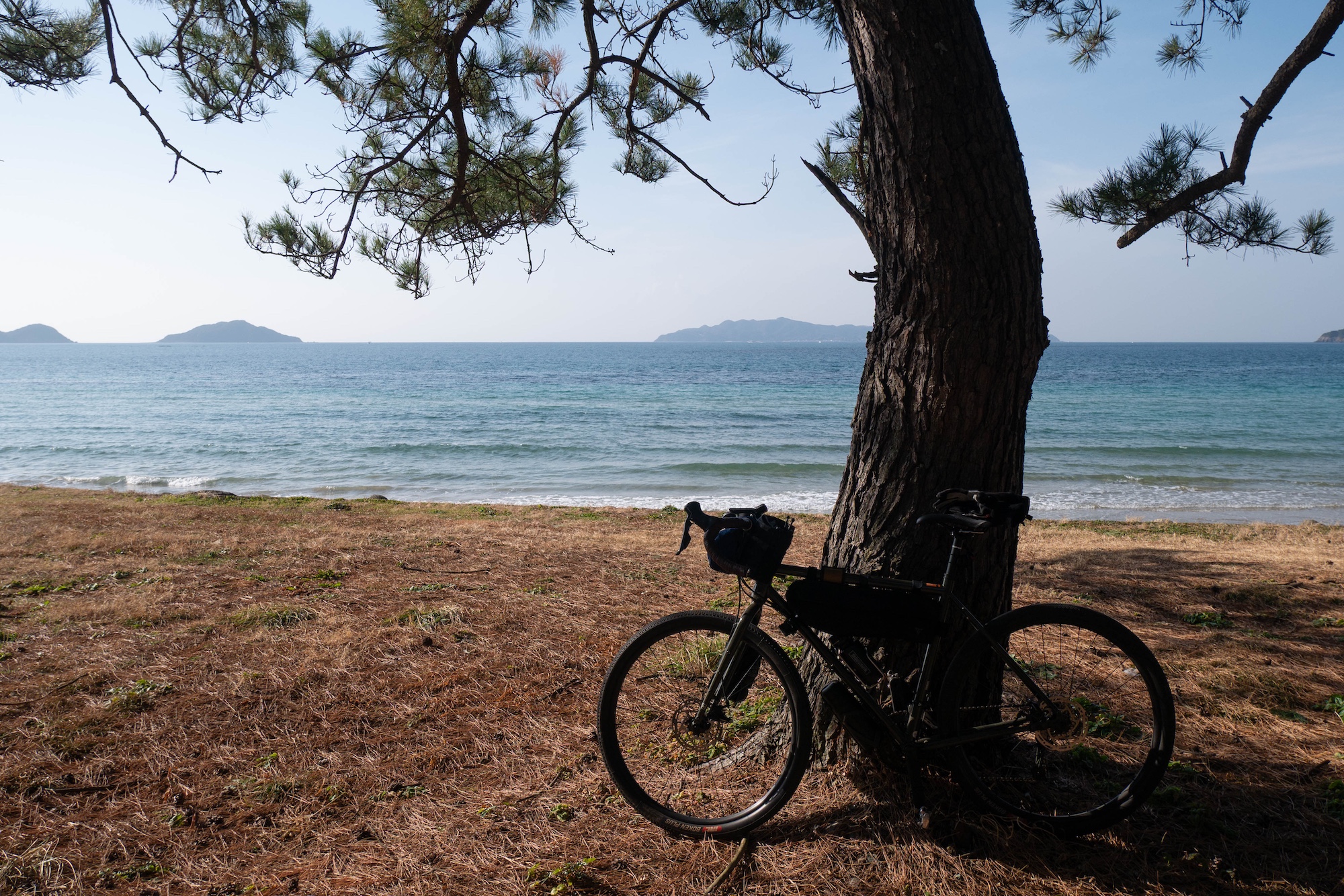 途中のさつき松原海岸の景色がきれいだったので、写真を撮り、軽く休憩。