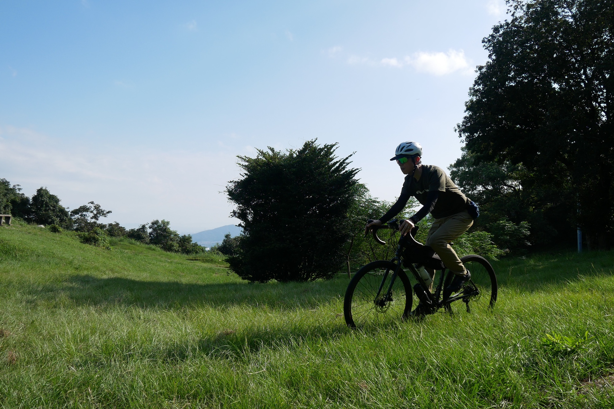 この日は、Tシャツ+モンベルのペダリングパンツライト。長ズボンは草むらや虫刺されを気にしなくてよいのが良い感じ。ただヒルクライム中はめちゃくちゃ蒸し暑かった。。やっぱりまだ短パンやレーパンのほうが涼しくて気持ち良い。もう少し寒い時期だとこのペダリングパンツも活躍するかな。